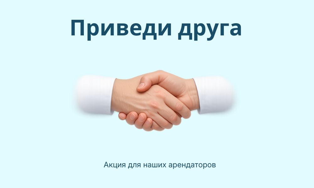 При заключении договора аренды по вашей рекомендации мы дарим скидку вам и вашим друзьям